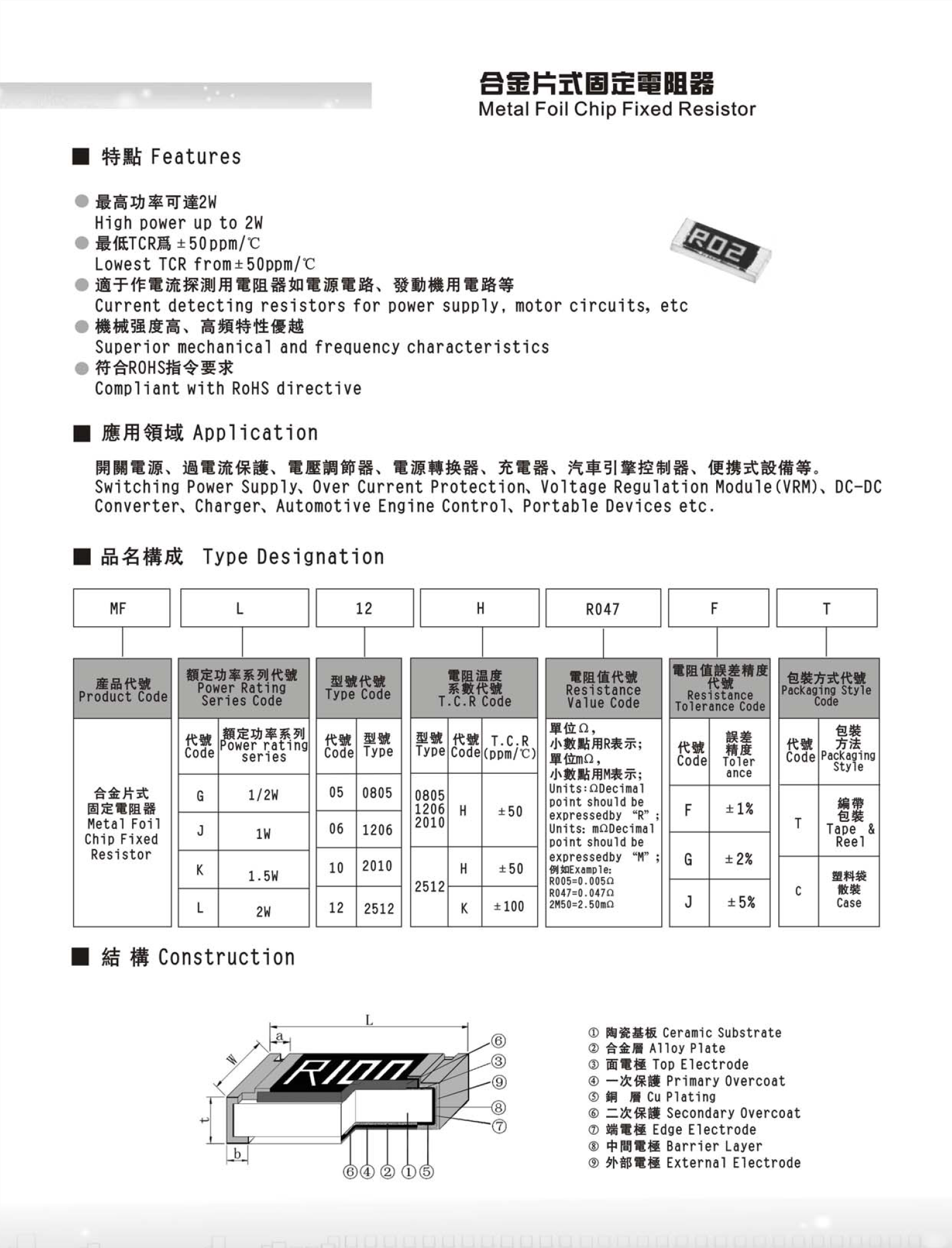 MF系列合金電阻采用高穩(wěn)定性、低TCR、高功率密度的進口合金材料作為電阻體,運用半導(dǎo)體黃光制程、濕法蝕刻及精密修阻等技術(shù)制作而成 ,其功能主要用于檢測電流,行業(yè)內(nèi)也稱為“電流檢測電阻”。